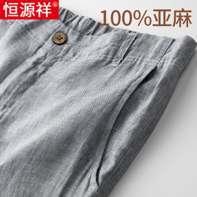 恒源祥纯亚麻裤男士休闲裤夏季薄款宽松大码中老年爸爸直筒长裤子