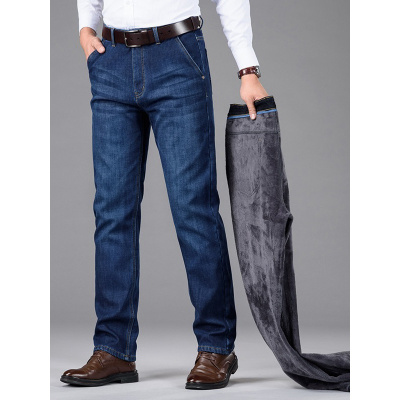 水貂绒牛仔裤柔软男士直筒加绒品质男裤子中年商务高腰休闲裤男款