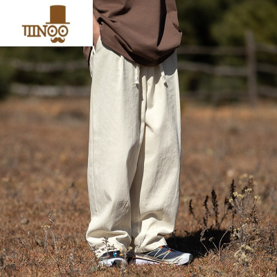 啄木鸟男士华夫格休闲裤春季薄款直筒裤潮男生美式高街百搭裤子Y