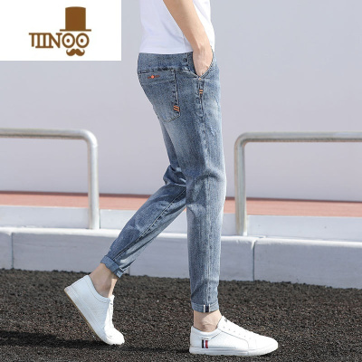 YANXU夏季薄款破洞九分牛仔裤男款潮牌夏天直筒休闲裤修身小脚男士裤子