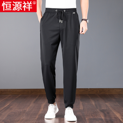 恒源祥冰丝束脚裤男夏季薄款男士休闲裤宽松直筒弹力速干运动裤子