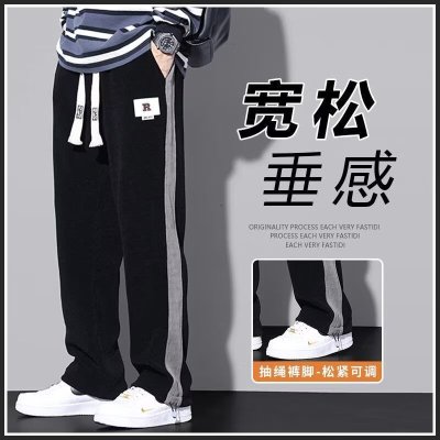 |美式侧边条纹加绒休闲裤男宽松束脚休闲裤潮流男束脚