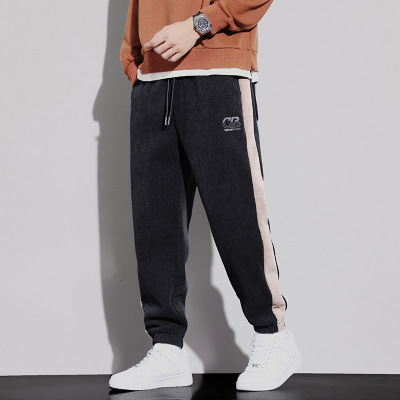 |秋季新款加厚男士休闲裤潮牌保暖卫裤宽松束脚休闲裤男