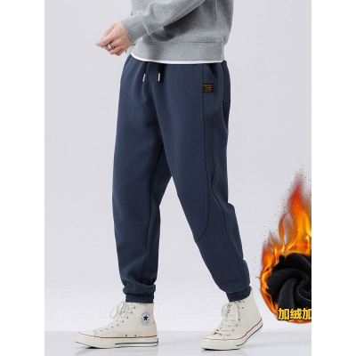 加绒卫裤秋冬季新款男士贴标拼接加厚保暖束脚运动休闲裤