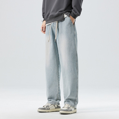 百搭显瘦男士宽松牛仔裤不挑身材简约长裤春秋新款浅色复古休闲裤