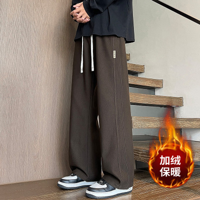 加绒保暖阔腿休闲裤男生秋冬新款宽松垂直感直筒长裤子男外穿