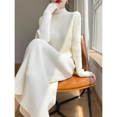 半高领配大衣针织连衣裙女秋冬内搭长款打底过膝加厚保暖针织长裙