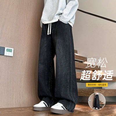 男装美式高街水洗牛仔裤男春秋新款男士潮牌直筒阔腿长裤男生裤子