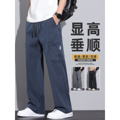 天丝牛仔裤男士2025新款潮牌阔腿春秋美式宽松直筒工装休闲裤子男