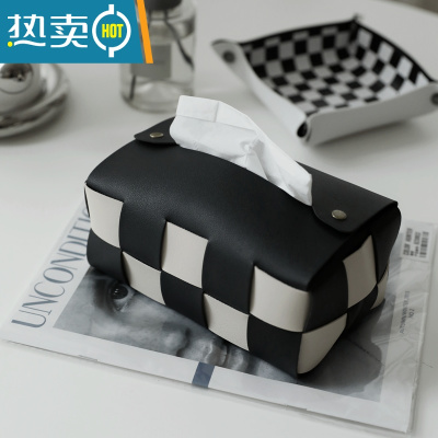 敬平装典美家ZOODII棋盘格纸巾盒客厅轻奢餐桌抽纸盒bv编织纸抽盒 黑面+白米