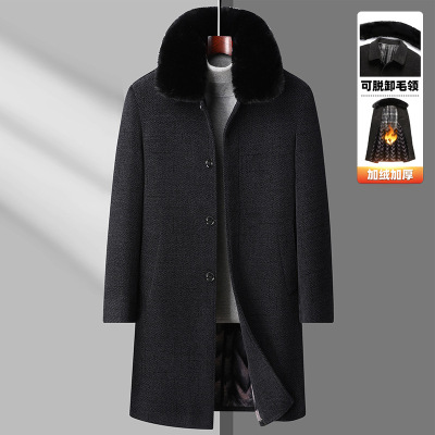 冬季新款长款加绒加厚脱卸毛领大衣风衣中老年男士保暖外套爸爸装