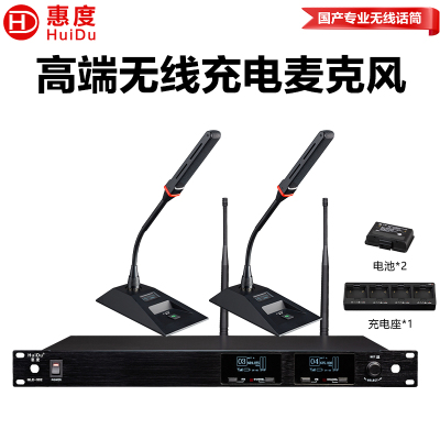 惠度(HuiDu)GLE-302专业无线一拖二超指向性话筒数字编码ID编码会议话筒无线充电真分集麦克风鹅颈款