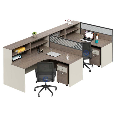 汉诺鑫威职员办公桌员工位卡座屏风位桌椅组合F型两人位含柜[不含椅]