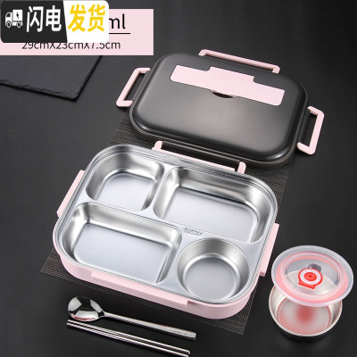 三维工匠多格不锈钢饭盒小学生分格便当盒餐盒儿童防烫专用带盖餐盘分隔型 北欧粉2500四格+不锈钢筷勺(无汤碗)
