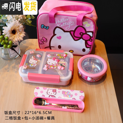 三维工匠韩版卡通学生分隔饭盒组合带盖餐盘防烫保温304不锈钢儿童 J138粉饭盒+包+小汤碗+餐具(四件套10.29更新