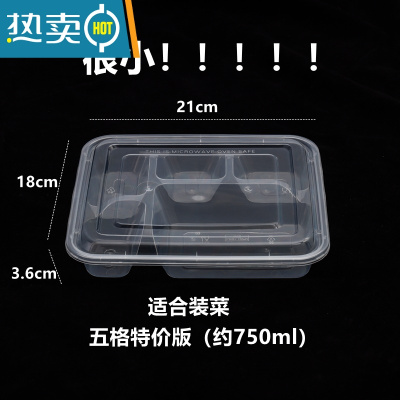 敬平柒悦黑色透明1000圆三格方四格便当盒外卖快餐盒配汤碗一次性餐盒 750方五格透明(150套)一次性餐具