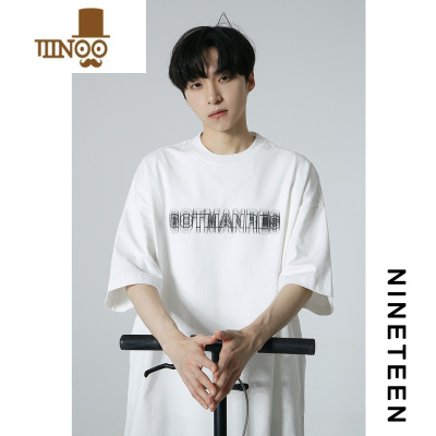 YANXU十九秋/夏季新款美式潮牌帅气短袖上衣宽松幻影字母印花T恤男生