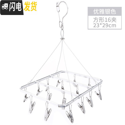 三维工匠晒袜子晾衣架晒架多夹子功能凉衣夹专用挂内衣内裤家用不锈钢 方形16夹银色 1个