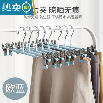 敬平裤架浸塑裤夹多功能内裤内衣夹防滑裤子夹裙子晾衣架袜架 纳米无痕裤架-欧蓝 10个