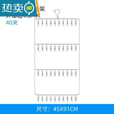 敬平晾袜子衣架多夹子 不锈钢袜子夹晾衣架多夹子器内裤凉衣架晒架 方形-40夹-带防风 1个衣夹