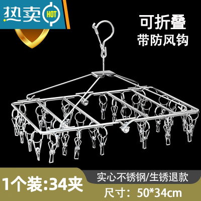 敬平晾袜子衣架多夹子 不锈钢袜子夹晾衣架多夹子器内裤凉衣架晒架 可折叠-34夹带防风 1个衣夹