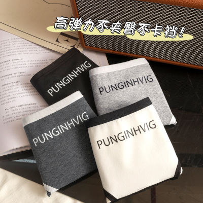 [独立包装]10A加长裆内裤女 纯棉运动风黑白灰女生内裤
