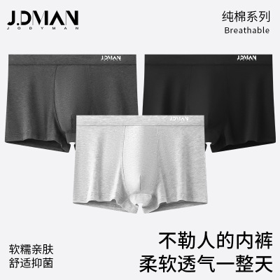 盒装4条棉质男士内裤 男士纯棉简约平角裤 中腰立体印花男士内裤