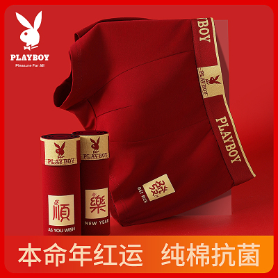 花花公子红色内裤男士纯棉本命蛇年结婚男款平角裤衩抗菌四角裤头