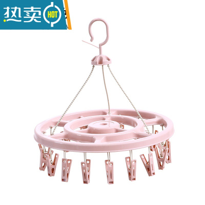敬平晾衣架多夹子婴儿袜子晾晒收纳器圆盘形32夹内裤内衣服防风家用 圆形款-粉色18夹子 1个衣夹