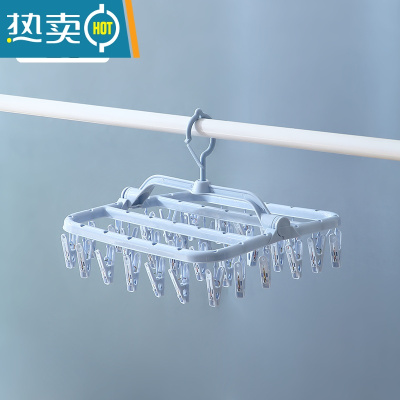 敬平多夹子挂晒袜子衣架内衣阳台内裤可折叠晾晒衣夹晾防风多功能衣服 [浅蓝色]32夹[1个装]