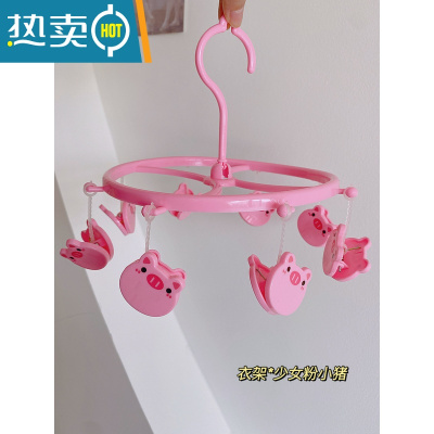 敬平晾衣架多夹子宿舍家用挂衣服内衣内裤多功能折叠收纳器晒袜子架 少女粉小猪*8夹衣架 1个衣夹