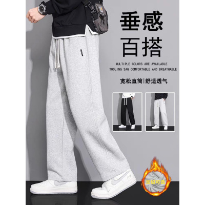 纯棉裤子男士秋冬季加绒加厚绒宽松直筒卫裤冬天休闲长裤
