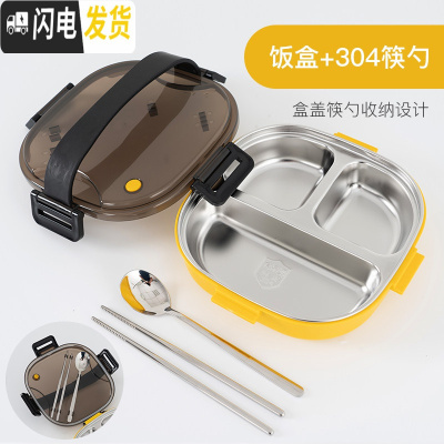 三维工匠高颜值分隔饭盒304不锈钢便当盒保温分格餐盒学生上班族筷勺餐具 黄色饭盒带筷勺套装(不锈钢内胆)1000