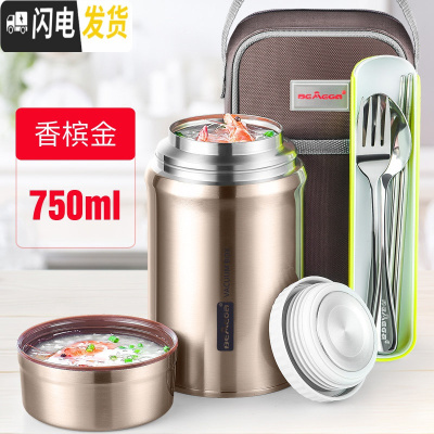 三维工匠焖烧杯焖烧壶闷烧罐女大容量便携焖粥不锈钢1人超保温饭盒 香槟金750(送保温拎包+餐具套装+食谱+杯刷)