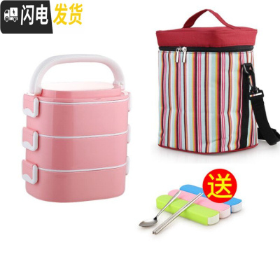 三维工匠保温饭盒多层上班族微波炉餐盒套装1人便携学生分格便当盒双三层 乐美能3层粉色含袋+餐具