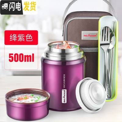 三维工匠焖烧杯焖烧壶闷烧罐女大容量便携焖粥不锈钢1人超保温饭盒 绛紫色500(送保温拎包+餐具套装+食谱+杯刷)