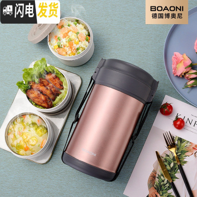 三维工匠保温饭盒不锈钢大保温桶女超长学生上班族1人便携多层 [双层防烫]玫瑰金2.3三层赠保温拎包+餐具套装