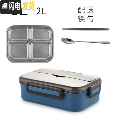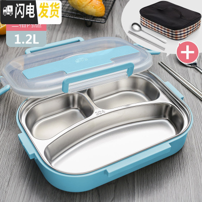三维工匠304不锈钢饭盒分隔型便当盒上班族1人小学生专用分格便携餐盒套装 (3格4格随机)蓝色送餐具(1.2)