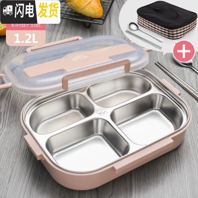 三维工匠304不锈钢餐盒盘分格套装上班族儿童小学生分隔型保温饭盒便当盒 北欧粉四格(送餐具)+袋子