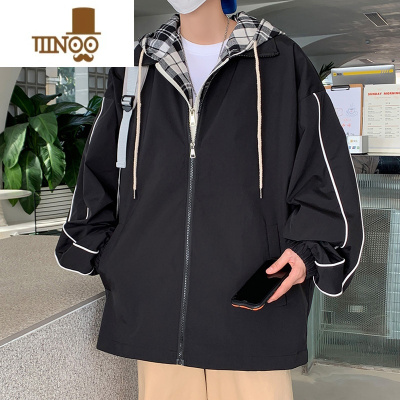 YANXU港风ins假连帽夹克男秋季加肥加大码潮胖子宽松学生百搭外套