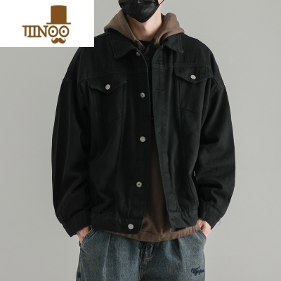 YANXU牛仔衣外套男翻领水洗做旧复古上衣飞行宽松休闲工装夹克潮