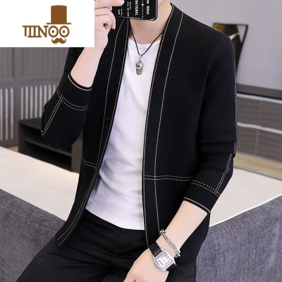 YANXU春季新款夹克外套男韩版个性辑明线V领上衣时尚潮流青年针织开衫