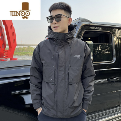 YANXU加厚刺绣连帽上衣网红同款冲锋衣外套潮流男百搭韩版宽松夹克