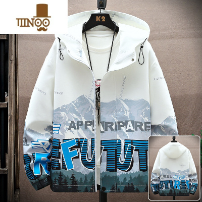 YANXU外套男款潮牌宽松休闲夹克男连帽潮流帅气开衫青少年秋季衣服