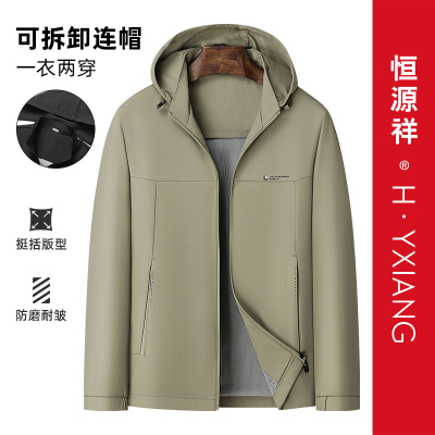 恒源祥2024秋季新款中青年连帽夹克男时尚休闲外套可拆卸帽茄克衫