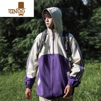 YANXU冲锋衣情侣款秋季侧条纹拼色夹克男中性风户外防风防风连帽外套男
