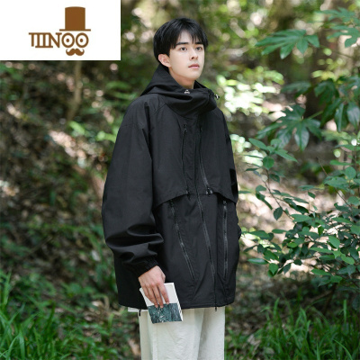 YANXU胖胖哥冲锋衣男美式机能户外运动夹克大码宽松胖子连帽外套