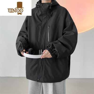 YANXU户外登山冲锋衣男款大码黑色工装外套痞帅青少年徒步防晒夹克