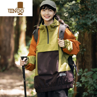 YANXU美式半拉链套头冲锋衣外套男春季防水痞帅撞色户外感宽松夹克