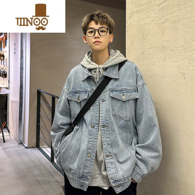 YANXUDAZO 款牛仔外套男生复古水洗翻领夹克ins宽松牛仔衣潮流